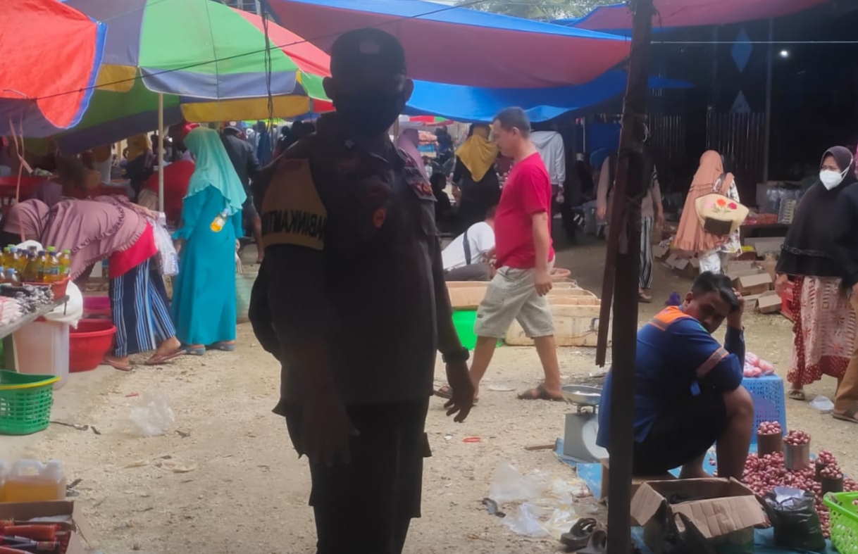 Bhabinkamtibmas Polsek Buke Briptu Syaiful Anwar H Patroli Dialogis dan Sambang untuk memberikan rasa aman dan nyaman kepada masyarakat di Pasar Tradisional Suka Maju Desa Andoolo Utama Kecamatan Buke