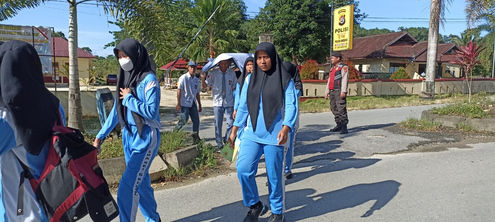 Kegiatan pengaturan lalu lintas tersebut dilakukan di jalan poros tepat di depan SMAN 6 Konawe Selatan yang dilalui para siswa dimana sekolah tersebut akan melaksanakan kegiatan Pekan Olahraga dan Seni dalam sepekan.
