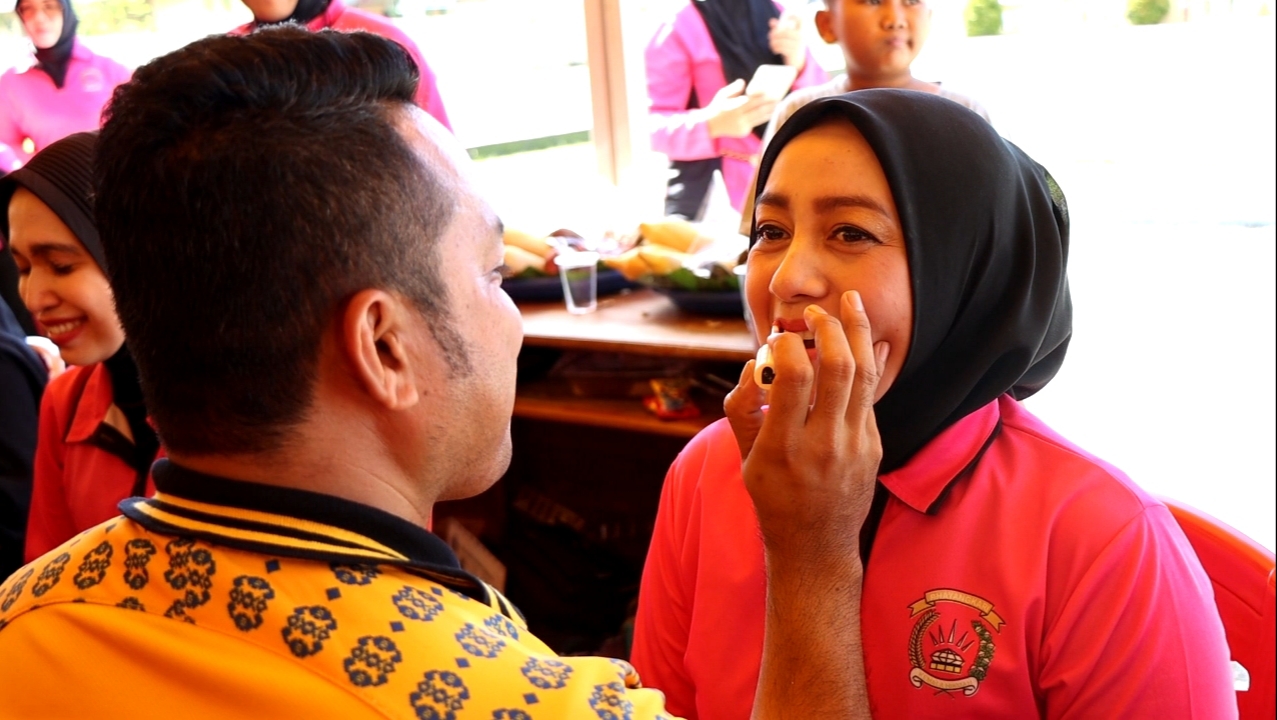 Kemeriaahan Hari Kesatuan Gerak Bhayangkari Ke 70 Tahun 2022 di Cabang Konawe Selatan ( Konsel ) pada Jum’at, 30 September 2022 semakin marak dengan adanya lomba merias wajah istri sendiri yang dilakukan oleh para suami – suami yang notabeninha adalah seorang Anggota Polri.