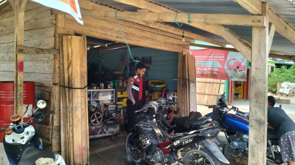 Polsek Buke melaksanakan patroli sambang ke bengkel motor guna mencegah dan menekan terjadinya gangguan kamtibmas,