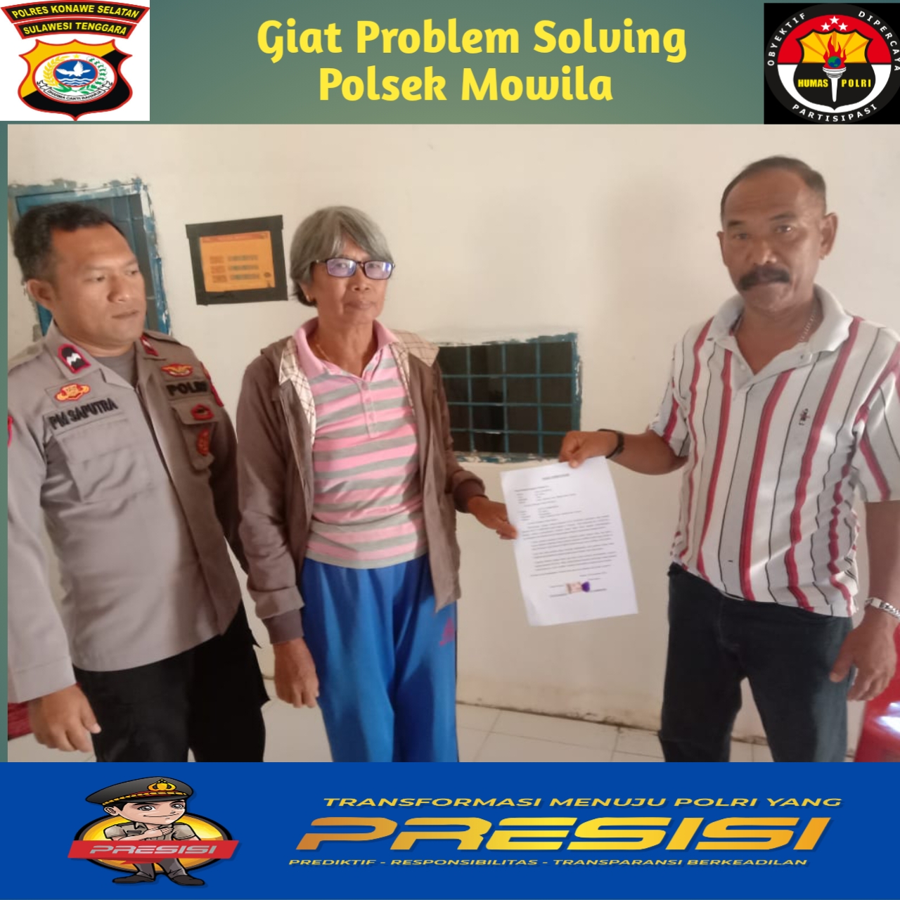 Hadir, berbuat dan bermanfaat dengan Problem Solving yang di laksanakan oleh Unit Binmas Polsek Mowila merupakan salah satu bentuk pelayanan kepada Masyarakat sehingga permasalahan yang ada segera dapat teratasi dengan cepat dengan cara damai dan secara kekeluargaan sehingga tidak menimbulkan permasalagan yang lebih luas dengan demikian kepuasan masyarakat terhadap pelayanan Polri Khususnya Polsek Mowila dirasakan langsung oleh warga, dimana Desa Lalosingi merupakan salah satu Desa yang merupakan Wilayah Hukum Polsek Mowila Polres Konawe Selatan dari 20 Desa yang ada di Kec. Mowila Kab. Konawe Selatan.